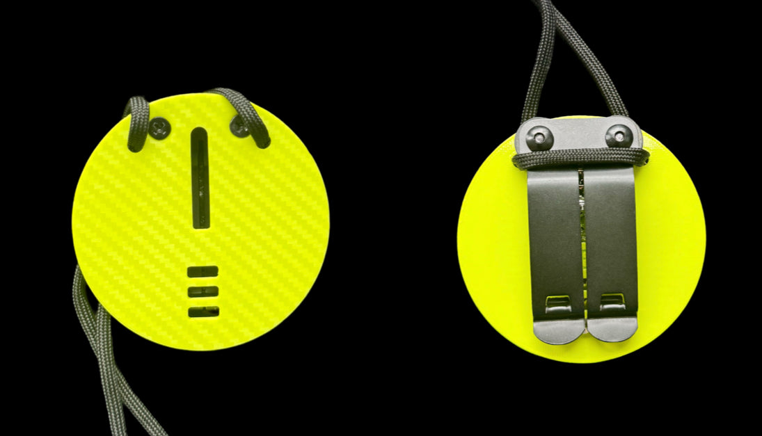 Hi-viz badge holder. Works as a clip on or worn around the neck.